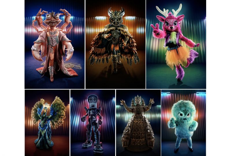 Hier zijn ze dan! King Krab, Oehoe, Bambi, Pauw, Flitser, Château en Pluisje uit 'The Masked Singer'